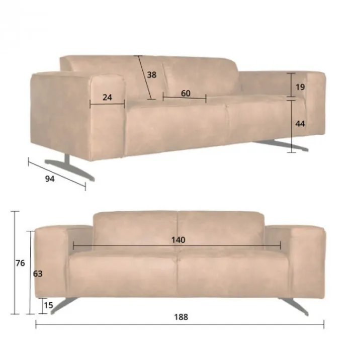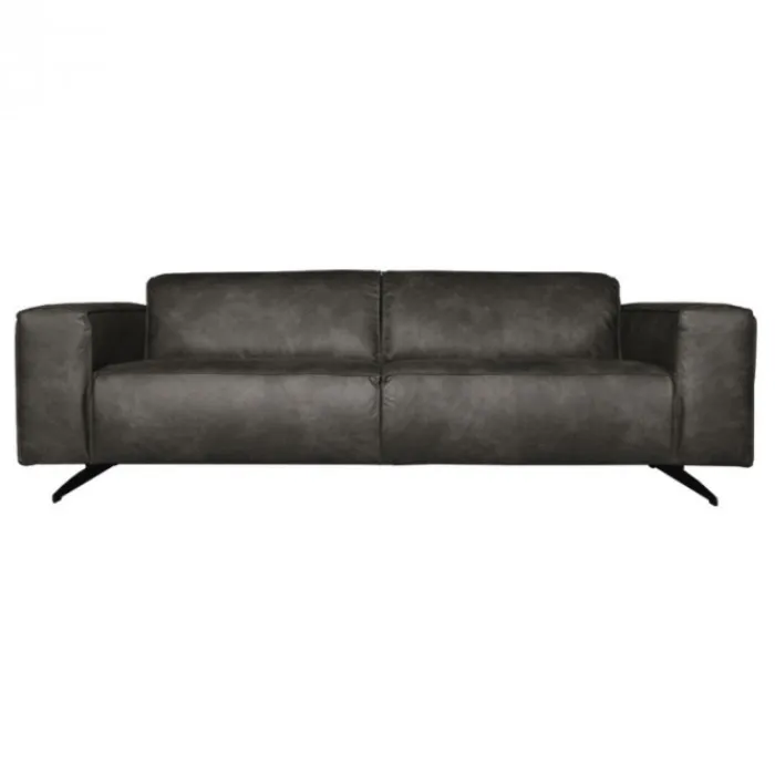 Deze stoere 2 zitsbank heeft met zijn diepe zit met bonellvering en lage rugleuning een moderne uitstraling. De Lambada heeft vaste kussens met opstaande naden en is uitgevoerd in de antraciet-kleurige recycle leersoort Colorado. De unieke brede poten zijn van zwart metaal. Houd je van een stevige zitting en een stoere industriële uitstraling, dan is dit jouw bank!