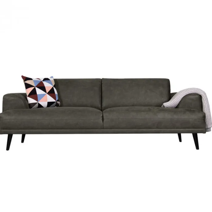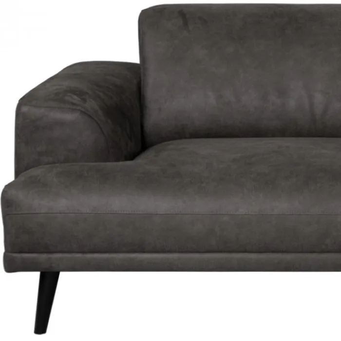 De 2,5 zitsbank Lagos is een moderne, comfortabele bank met een stevige zitting. De bank wordt gekenmerkt door de unieke vorm van de leuningen en de hoge zwarte pootjes, die zorgen voor een ruimtelijk effect. De bank is uitgevoerd in de prachtige samengestelde leersoort Bull in de kleur antraciet. De bank beschikt over vaste zit- en rugkussens.