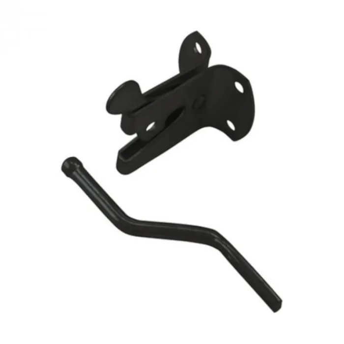 HomingXL universele beslagset van gegalvaniseerd staal en daarna zwart gepoedercoat voor tuindeuren en tuinpoorten. Set bestaat uit een heksluiting en twee kruishengen.