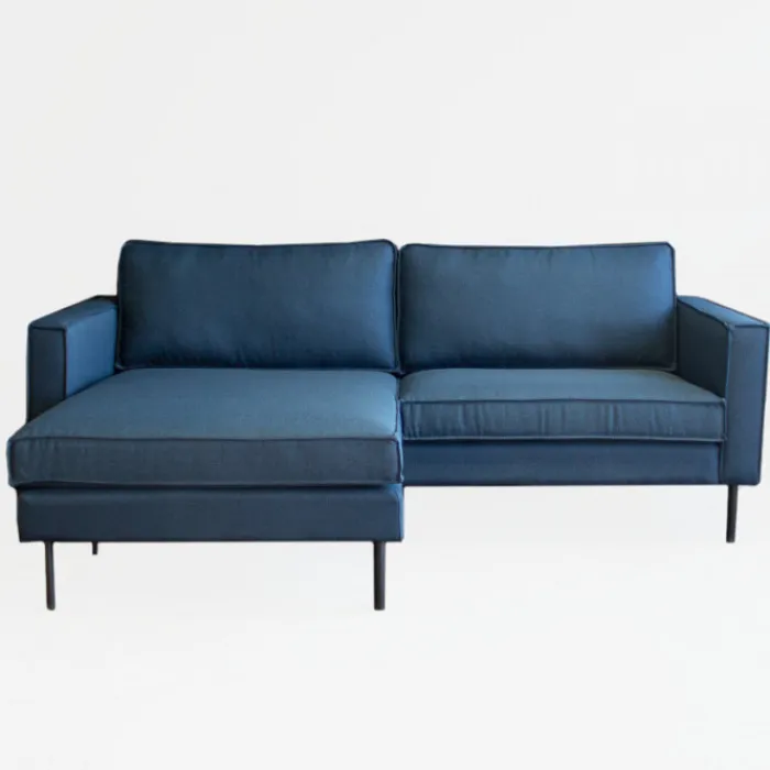 De loungebank Frevo is een hippe loungezit met een rechte armleuning. Deze bank is geschikt voor vrijwel ieder interieur en wordt geleverd met een losse hocker, waardoor je een linker of rechterhoek kan creëren. De bank is uitgevoerd in de stof malmo donkerblauw. Dit is een stevige, geweven stof.