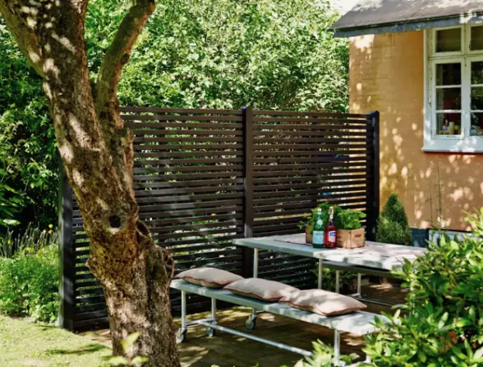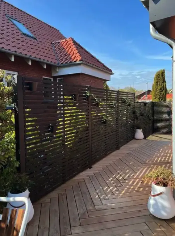 Plus tuinscherm recht vuren geïmpregneerd en zwart gegrond uit de serie Tokyo. De afmetingen van dit scherm zijn 180 x 180 cm (b x h). RVS geschroefd. Kleur: zwarte grondlaag op waterbasis, dichtstbijzijnde RAL 9005 (dient afgebeitst te worden).