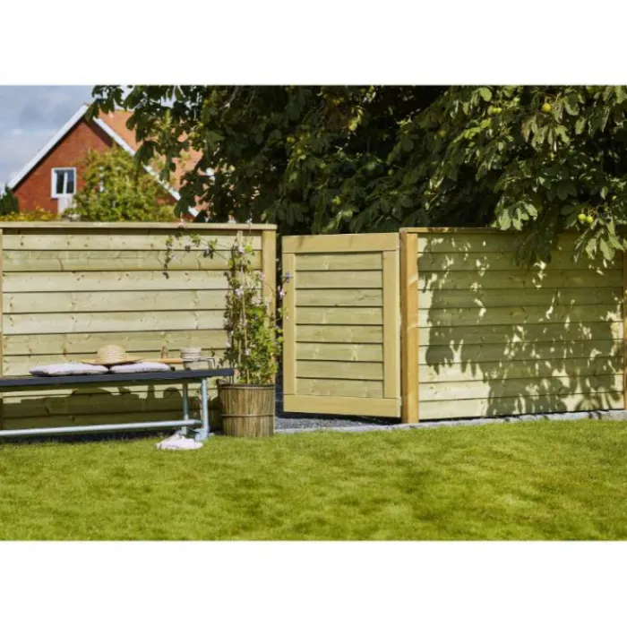 Plus Danmark tuindeur recht vuren geimpregneerd uit de serie Plus Klink. Afmeting: 100 x 125 cm (B x H).