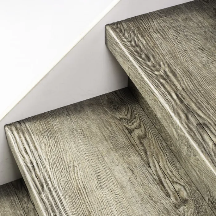 Dit is een complete Stepwoord traprenovatieset met SPC toplaag traptreden en stootborden in de kleur verweerd eiken, inclusief montagekit en afwerkingskit. Deze complete set is geschikt voor een trap met 1 kwart draai met 13 treden. De set wordt geleverd inclusief stootborden, omdat het een set voor een dichte trap betreft.