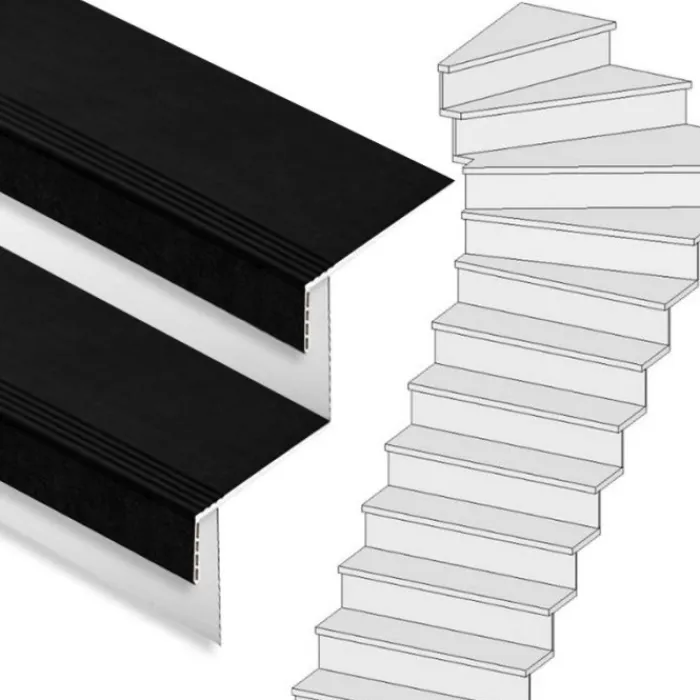 Dit is een complete Stepwoord traprenovatieset met SPC toplaag traptreden in de kleur zwart en witte stootborden, inclusief montagekit en afwerkingskit. Deze complete set is geschikt voor een trap met 1 kwart draai met 14 treden. De set wordt geleverd inclusief witte stootborden, omdat het een set voor een dichte trap betreft.