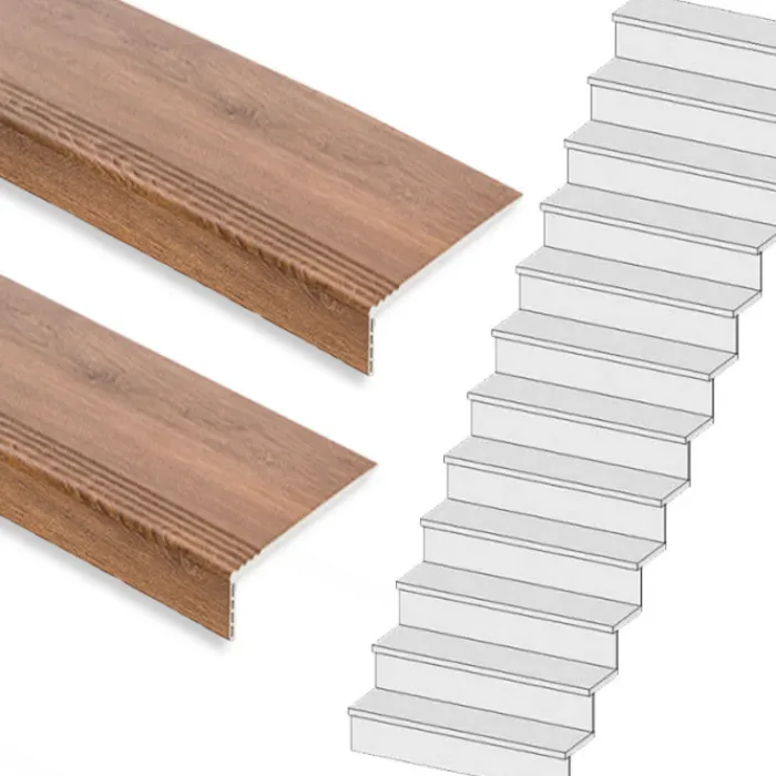 Dit is een complete Stepwoord traprenovatieset met SPC toplaag traptreden in de kleur bruin eiken, inclusief montagekit en afwerkingskit. Deze complete set is geschikt voor een rechte trap met 14 treden. De set wordt geleverd zonder stootborden.