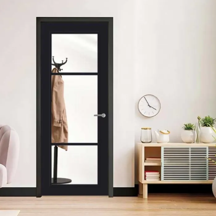 De Svedex Front deuren worden gekenmerkt door een vernieuwend en onderscheidend design. De dichte binnendeuren zijn voorzien van krachtige, diepe lijnen en de glasdeuren zijn voorzien van strakke glaslatten, in de kleuren wit of zwart. Met deze serie kies je voor een unieke en verfrissende look in jouw interieur!