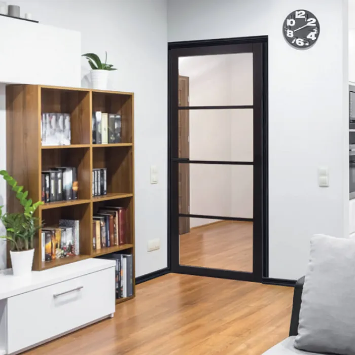 De Austria Chiari binnendeur uit de serie Nero Legno is een industriële houten deur met een uitstraling van een luxe stalen deur. Dit komt door de extra slanke stijlen. Deze zwarte binnendeur is gemaakt van hout met HDF toplaag.