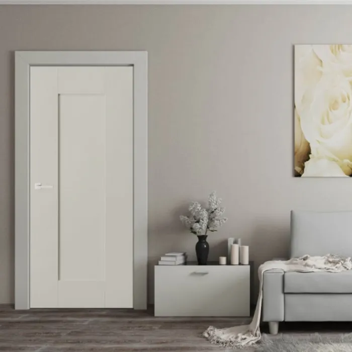 De binnendeur wordt voorbehandeld met een hoogwaardige polyurethaan witte voorlak (RAL9010 – zuiverwit). Schuur de deur licht op voordat je de binnendeur aflakt.
