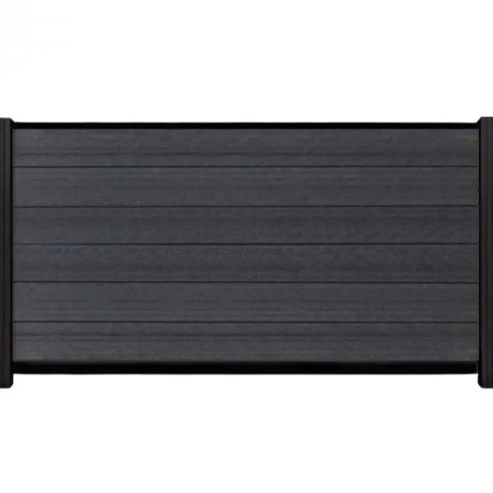 Schutting composiet co-extrusie Garda antraciet met zwart aluminium kader (180 x 90 cm). Deze schutting wordt geleverd als een zelfbouw pakket waarmee je zelf een unieke schutting kunt maken.