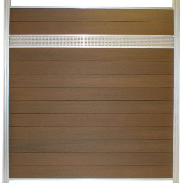 Hot Elephant Schutting composiet Design donkerbruin met blank aluminium frame (180 x 180 cm)