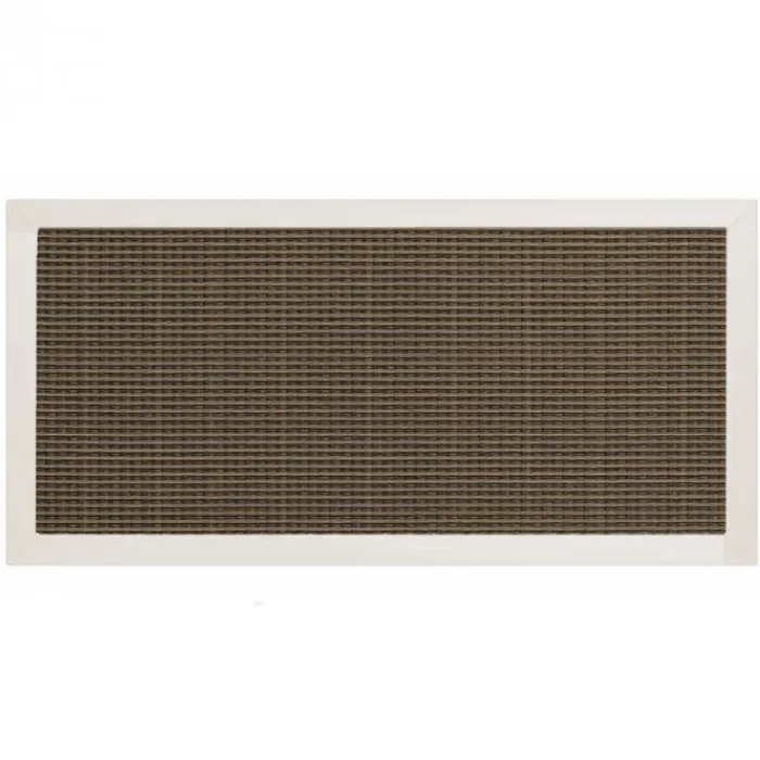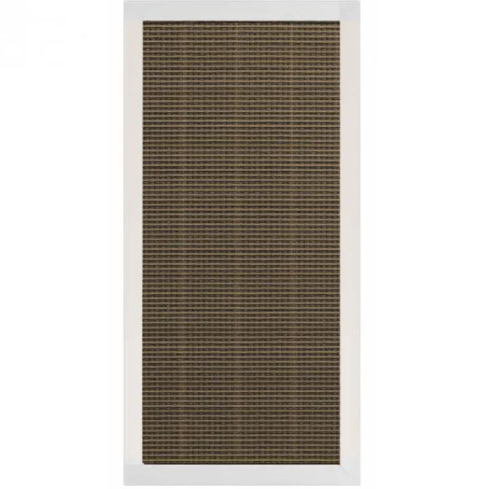 C-Wood schutting Sereno 180 x 90 cm. Dit scherm heeft een wit aluminium kader met een textileen vulling in de kleur Mocha Weave. De kern van dit scherm is opgebouwd uit een draadscherm wat aan twee zijden is voorzien van zwart anti-UV doek. Daarop zit aan beide zijden het textileen doek. Dit zorgt ervoor dat het scherm bestand is tegen weer en wind. Het scherm is volledig dicht en geeft veel privacy!