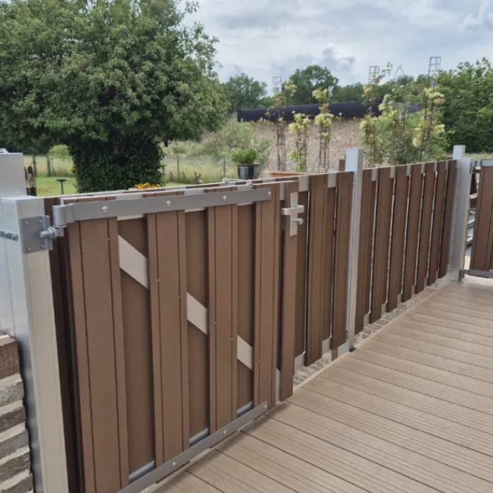C-wood tuinhek poort composiet Stijl antraciet met alu frame incl. hang- en sluitwerk (100 x 93,5 cm). Stevig en zeer onderhoudsvriendelijke tuindeur gemaakt van aluminium dwarsliggers met daartussen composiet planken in de kleur bruin.
