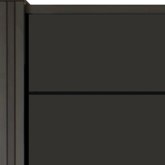 C-Wood zelfbouw schutting composiet Modular antraciet met antraciet aluminium accessoires. Geschikt om een scherm te maken van 180 cm hoog en maximaal 180 cm breed. De breedte is eenvoudig in te korten. De netto hoogte van het scherm is enkele centimeters lager dan de opgegeven 180 cm.