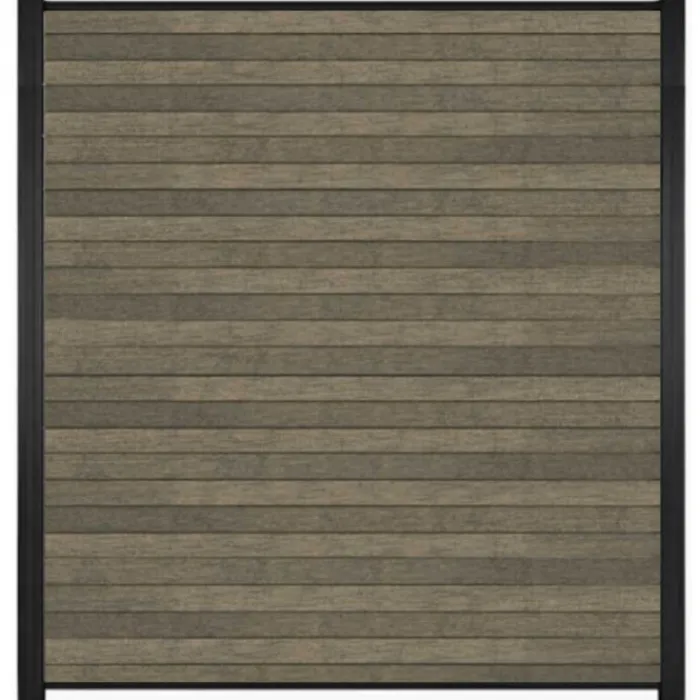 C-Wood zelfbouw schutting composiet Rhombus Double grijs met zwart aluminium accessoires. Geschikt om een scherm te maken van 200 cm hoog en maximaal 180 cm breed. De breedte is eenvoudig in te korten.