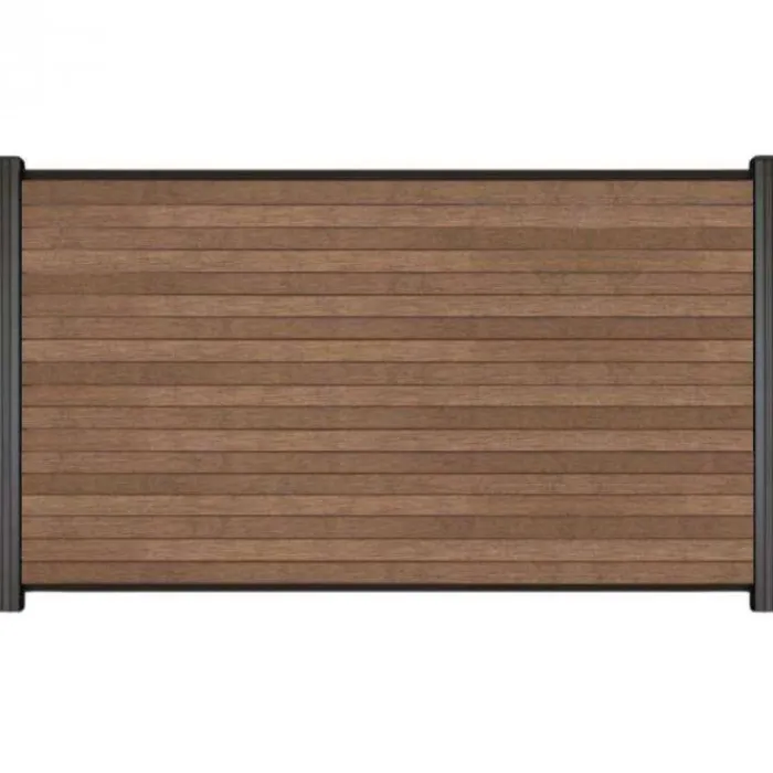 C-Wood zelfbouw schutting composiet Rhombus Triple bruin gevlamd met antraciet aluminium accessoires. Geschikt om een scherm te maken van 90 cm hoog en maximaal 180 cm breed. De breedte is eenvoudig in te korten.