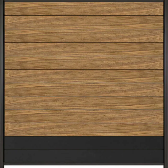 C-Wood zelfbouw schutting hardhout Mix & Match Thermo Fraké / antraciet met antraciet aluminium accessoires. Afmeting is 180 x 180 cm. De schuttingdelen schuif je van bovenaf tussen de C-Wood Modular / Mix & Match palen. De volgorde van de verschillende planken kan je zelf bepalen. Je begint onder en eindigt bovenop. De netto hoogte van deze schutting is enkele centimeters lager dan de opgegeven 180 cm.