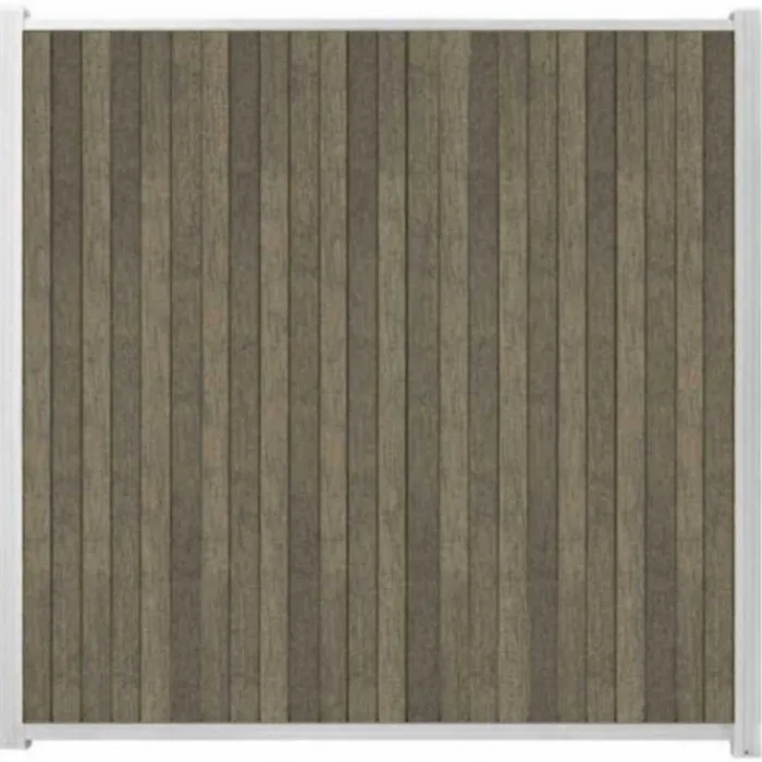 C-Wood zelfbouw schutting composiet Rhombus Double grijs met wit aluminium accesoires. Met deze bundel kun je een verticale schutting bouwen circa 170 cm breed en 180 cm hoog.