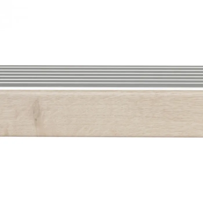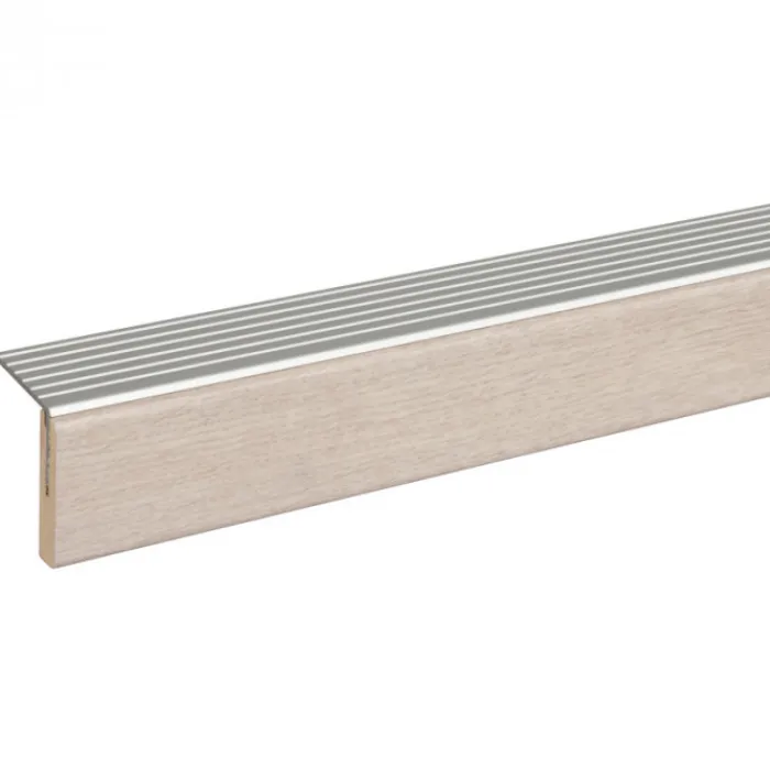 ewe / CanDo afwerkprofiel beige eiken Dit is een extra ‘neus’ met een aluminium profiel, waarbij je de aansluiting kan maken met de verdiepingsvloer.