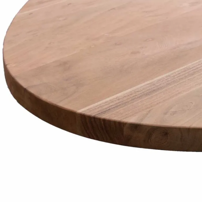 Het tafelblad van Acacia hout geeft een robuuste uitstraling door de fijne nerf en vlamtekening in het hout. Barsten door de wind, haarscheuren en noesten zijn littekens die het leven van de boom weergeven. Het boomstammotief geeft een speels uiterlijk. Acaciahout is een duurzame loofhoutsoort wat afkomstig is uit eco-vriendelijke plantages.