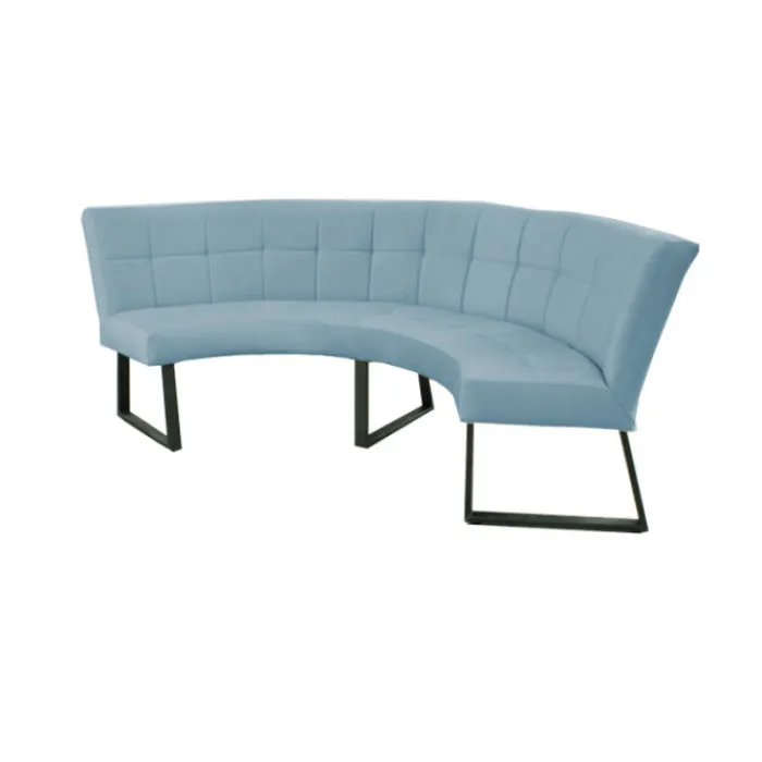 HomingXL ronde eetkamerbank geschikt voor een ronde tafel met een diameter van 150 cm. Deze stoere halfronde eetkamerbank Amsterdam is gestoffeerd met de prachtige Element velours stof in de kleur lichtblauw. De bank is uitgevoerd met zwarte metalen poten. Deze eetkamerbank heeft een stoere uitstraling en is zowel geschikt voor een industrieel als een modern interieur.