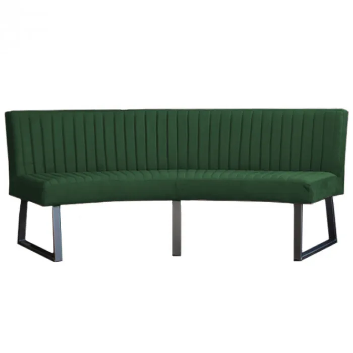 HomingXL ovale eetkamerbank geschikt voor een ovale tafel met een lengte van 240 cm. Deze stoere ovale eetkamerbank Hengelo is gestoffeerd met de prachtige Element velours stof in de kleur groen. De bank is uitgevoerd met zwarte metalen poten. Deze eetkamerbank heeft een stoere uitstraling en is zowel geschikt voor een industrieel als een modern interieur.