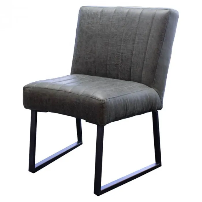 Deze stoere halfronde eetkamerstoel Hengelo is gestoffeerd met de prachtige antraciet-kleurige lederlook stof Missouri 09. De stoel heeft zwarte metalen poten. Deze eetkamerstoel heeft een stoere uitstraling en is zowel geschikt voor een industrieel als een modern interieur.