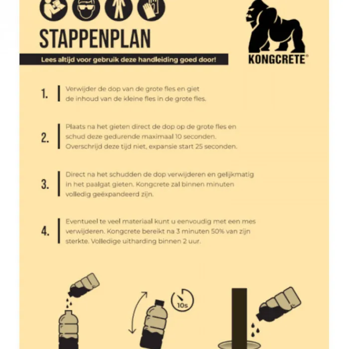 Je dient de Kongcrete kit minimaal 2 uur voor gebruik te laten klimatiseren bij temperaturen tussen de 18°C en 23°.