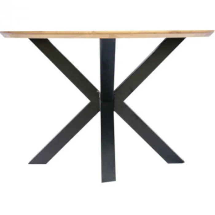 Deze mooie ronde tafel met visgraatmotief heeft in het midden een kruispoot. Afmeting van de tafel is 120 x 120 cm, hoogte 81 cm. Zoals de merknaam al aangeeft, is dit een echte eyecatcher in je eetkamer. Deze tafel heeft een lak laag waardoor deze weinig onderhoud heeft. Is de tafel toch vies geworden? Neem deze dan met een vochtige doek af.