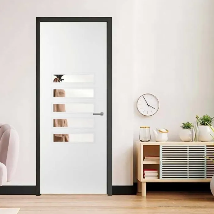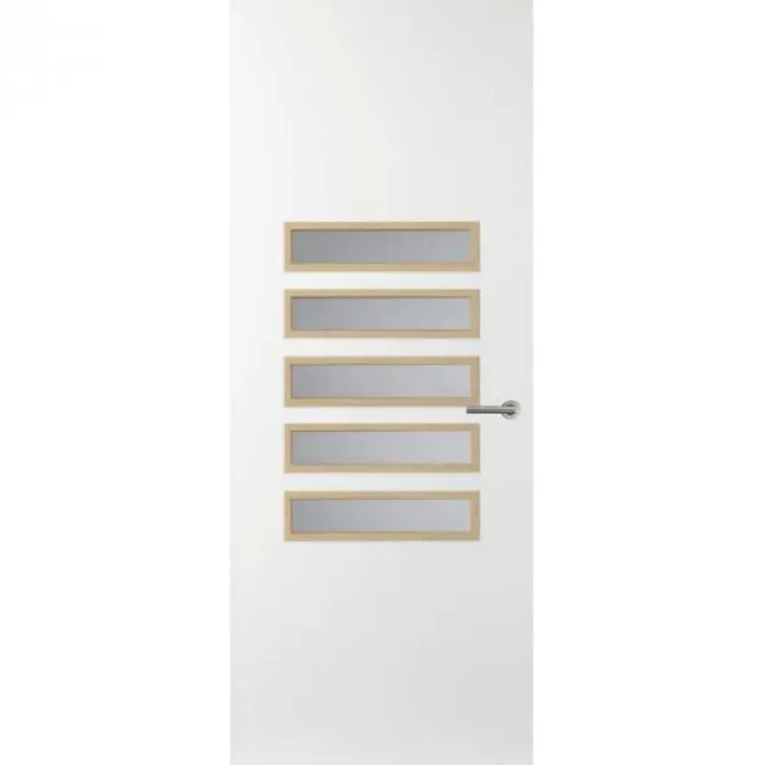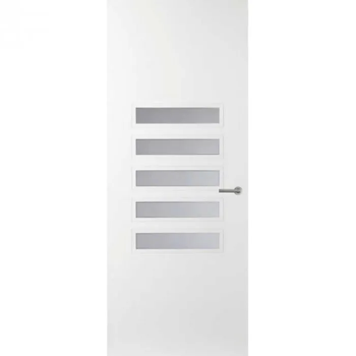 De Svedex AE25 is een moderne binnendeur met een design van pure eenvoud. De binnendeur beschikt over 5 smalle ruiten onder elkaar met een brede omlijsting. Dit geeft een stijlvol karakter.