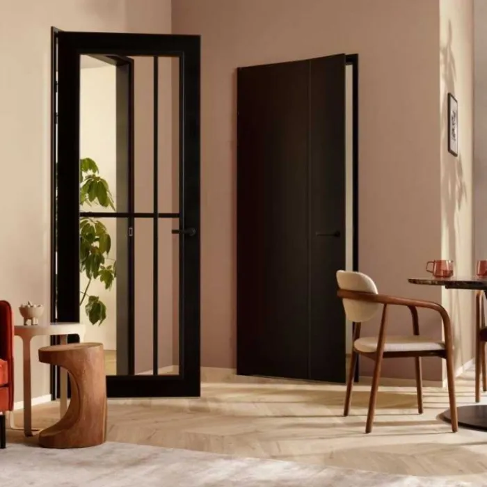 De Svedex Front deuren worden gekenmerkt door een vernieuwend en onderscheidend design. De dichte binnendeuren zijn voorzien van krachtige, diepe lijnen en de glasdeuren zijn voorzien van strakke glaslatten, in de kleuren wit of zwart. Met deze serie kies je voor een unieke en verfrissende look in jouw interieur!