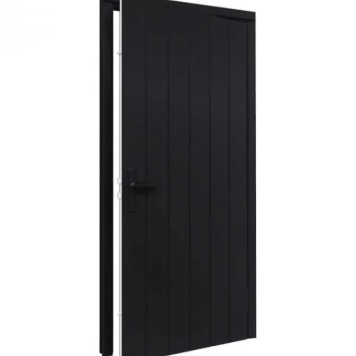 Trendhout enkele plaatdeur inclusief kozijn. Afmeting deur – 930 x 2115 mm. Afmeting kozijn – 1064 x 2189 mm. Door de aluminium inlage heeft deze plaatdeur een hoge stabiliteit en maatvastheid. De plaatdeur wordt geleverd exclusief dorpel. Deze is te vinden bij de bijbehorende producten.