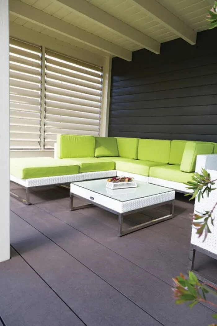 Hoogwaardige en duurzame semi massieve composietplank. Het kunststofcomponent in Duowood is HDPE. De ene zijde heeft grove ribbel, de andere zijde is vlak. Deze vlonderplank is extra breed. Dit geeft een stoere uitstraling.