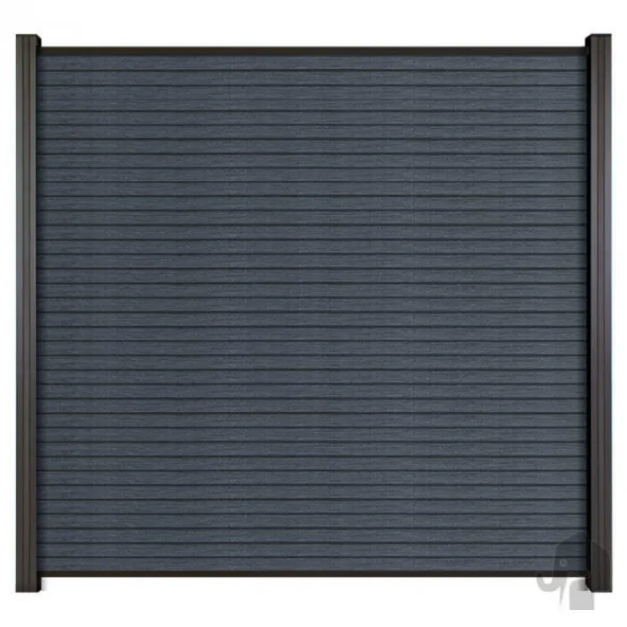Hot Elephant Schutting composiet Design donkerbruin met blank aluminium frame (180 x 180 cm)