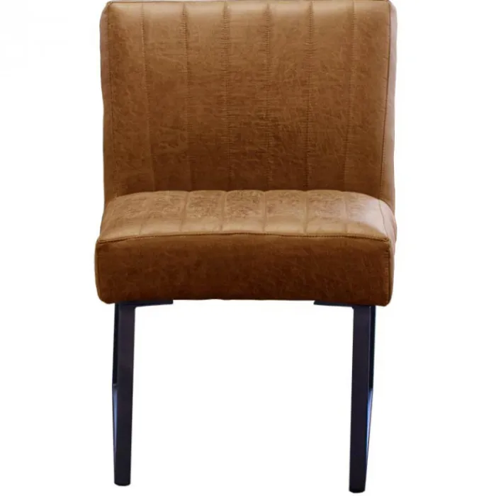 Deze stoere halfronde eetkamerstoel Hengelo is gestoffeerd met de prachtige coganc-kleurige lederlook stof Missouri 03. De stoel heeft zwarte metalen poten. Deze eetkamerstoel heeft een stoere uitstraling en is zowel geschikt voor een industrieel als een modern interieur.