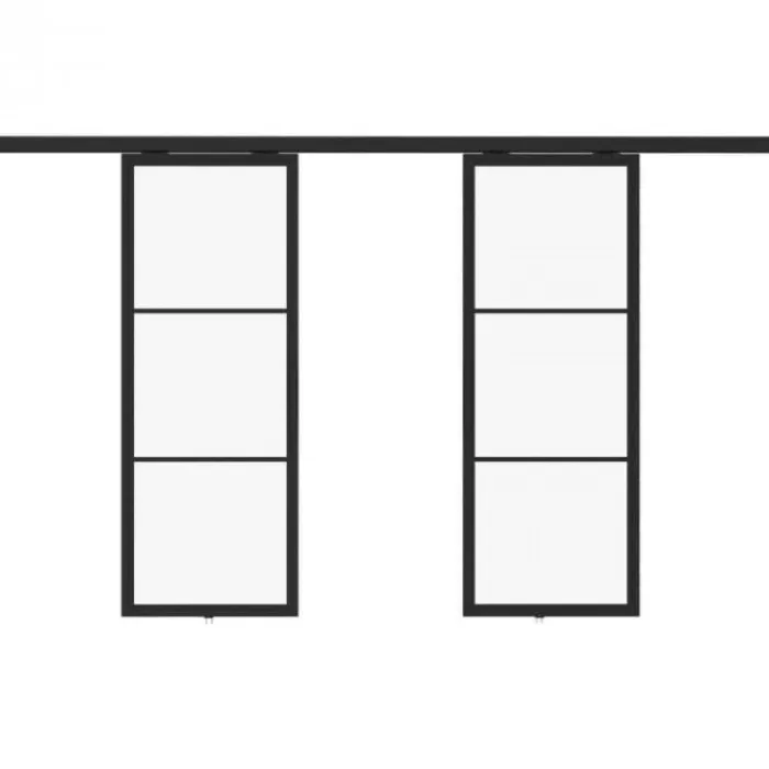 HomingXL ensuite deuren – Loft – 3 vaks helder glas – 215 x 200 cm. Deze set bestaat uit twee schuifdeuren 215 x 100 cm waarmee je twee kamers van elkaar kunt scheiden. De deuren kenmerken zich door een modern, stoer en strak design. Het zorgt voor veel lichtinval en een ruimtelijk karakter.