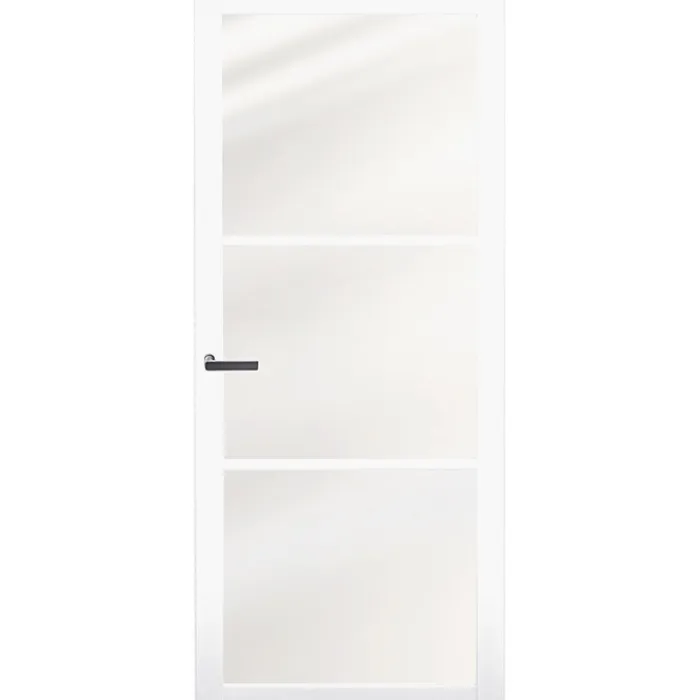 De Austria Bianco Giasole uit de serie Pronto Legno is een binnendeur met industriële uitstraling. De binnendeur wordt voorzien van krukgatboring en is standaard voorzien van afgeronde scharnierinkrozingen. Bij de hoogte van 201,5 en 211,5 cm zitten er 3 inkrozingen in. Bij een hoogte van 231,5 cm zijn dit er 4. Wil je de binnendeur met verdekte scharnieren (Swing VS-19) om de binnendeur nog strakker te maken, dan is dit alleen mogelijk bij een deurhoogte van 231,5 cm.