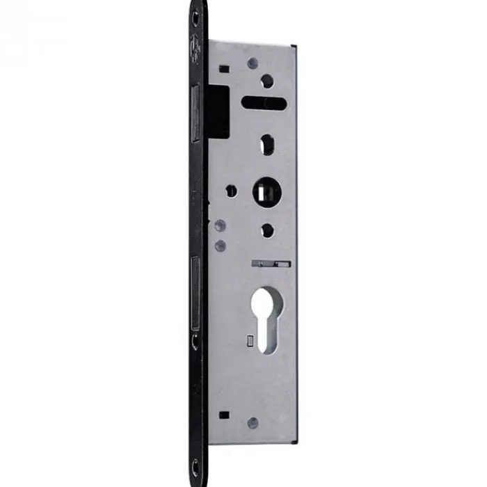 Austria magneet cilinderslot (smalslot) zwarte voorplaat t.b.v Nero en Pronto deuren. Doornmaat van dit slot is 35 mm. De doornmaat van een slot is de afstand tussen de voorkant van de voorplaat van het slot tot het hart van het krukgat en/of cilindergat.