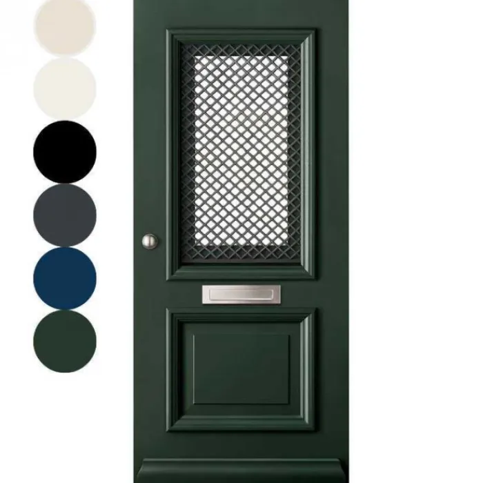 Deze klassieke voordeur uit de serie City Line is gemaakt van Merbau hardhout. Deze voordeur heeft typisch Nederlandse facetprofielen met glas en een rooster. Achter dit rooster zit een draairaam gemonteerd met mat chroom-kleurig draairaambeslag. De deur is voorbehandeld met een grijs kleurige Prime Quality verf. Deze is gemaakt op basis van alkydhars (120 mi Sigmalitch A22). Na de montage dient de deur nog afgelakt te worden in de gewenste kleur voor de garantie (zie ook de bijlage verwerkingsvoorschriften, garantie en voorwaarden). Het is ook mogelijk om de deur af te laten lakken tegen een meerprijs. Het is hierbij aan te raden om voor alle deelbewerkingen te kiezen. Ga je bijvoorbeeld zelf scharnieren infrezen, dan dien je deze nogmaals van de benodigde verlagen te voorzien. Bij de deur Harlingen is een briefsleuf mogelijk.