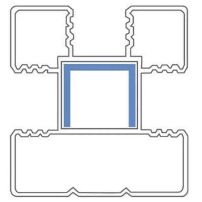 Het profiel voorkomt doorbuiging van de aluminium paal en dient zowel rechts als links van de deur gebruikt te worden.
