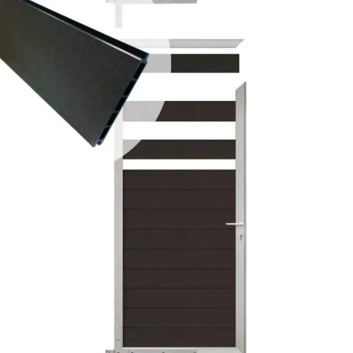 C-Wood zelfbouw tuinpoort Mix & Match blank aluminium frame. Afmeting 90 x 180 cm. De netto hoogte van deze tuinpoort komt uit op 89,5 cm. De poort wordt geleverd inclusief deurbeslag.