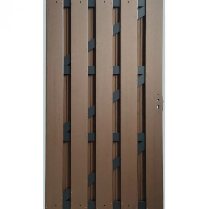 Tuinpoort composiet Bari bruin gevlamd 100 x 180 cm. Deze deur wordt geleverd met hang- en sluitwerk. Deze deur past bij de C-Wood Bari tuinschermen.