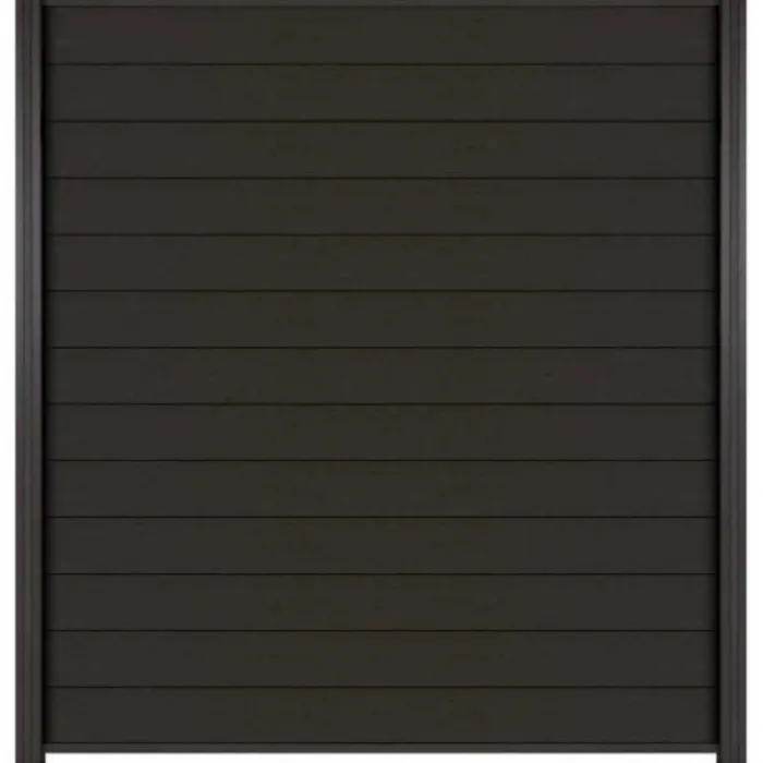 C-Wood zelfbouw schutting composiet Mix & Match antraciet met antraciet aluminium accessoires. Afmeting is 180 x 200 cm. De schuttingdelen schuif je van bovenaf tussen de C-Wood Modular / Mix & Match palen. De volgorde van de verschillende planken kan je zelf bepalen. Je begint onder en eindigt bovenop. De netto hoogte van deze schutting is enkele centimeters lager dan de opgegeven 200 cm.