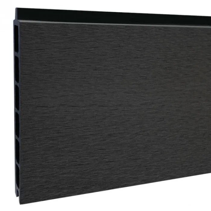C-Wood zelfbouw schutting composiet Modular antraciet met antraciet aluminium accessoires. Geschikt om een scherm te maken van 200 cm hoog en maximaal 180 cm breed. De breedte is eenvoudig in te korten. De netto hoogte van het scherm is enkele centimeters lager dan de opgegeven 200 cm.