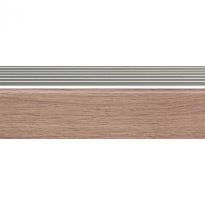 ewe / CanDo afwerkprofiel Bruin Eiken. Dit is een extra ‘neus’ met een aluminium profiel, waarbij je de aansluiting kan maken met de verdiepingsvloer.