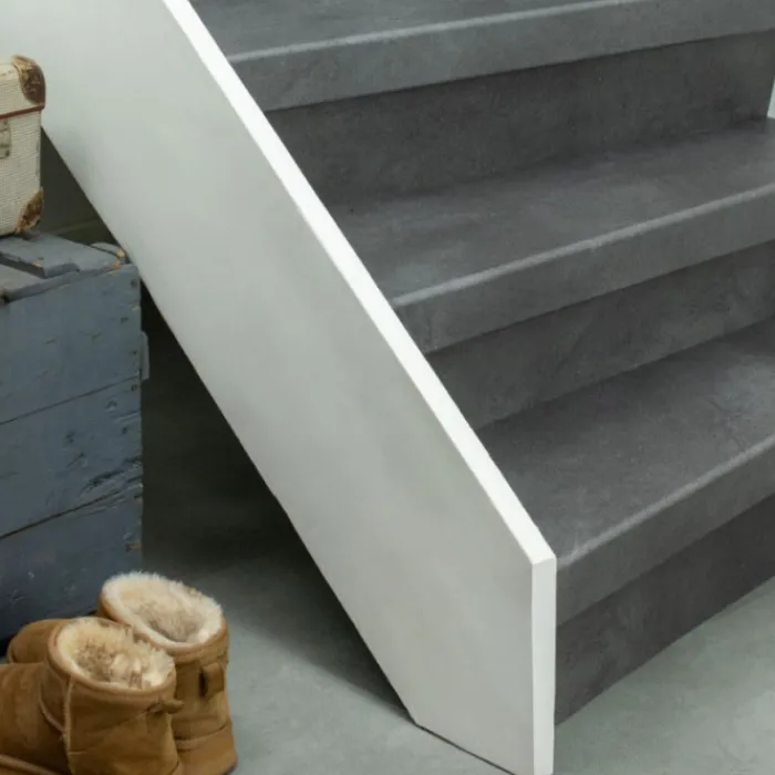 Stepwood PVC stootbord voor de verticale delen van de trap. Eenvoudig de trap bekleden met Stepwood traprenovatie. PVC toplaag stootbord, dus ook dezelfde afwerking als de treden. Het stootbord is 150 cm breed, hiermee kun je zelf de trap renoveren.