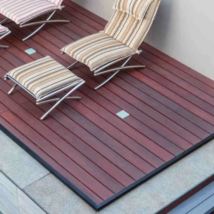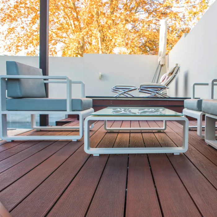 Vlonder totaalpakket voor 1m2 gelegd met Padoek (rood) composiet vlonderplanken van 500 cm lang, 2,5 cm dik en 21 cm breed. Dit pakket bestaat uit vlonderplanken, onderbalken, clips en schroeven om de vlonderterras van te maken. Vul het benodigd aantal vierkante meter terras in en de website rekent automatisch uit hoeveel planken je ontvangt. Bij dit pakket wordt geen rekening gehouden met snijverlies. Leg je je terras in een halfsteenspatroon, bestel dan extra onderbalken mee. De totale hoogte (onderbalken plus vlonderplanken) is 65 mm hoog.