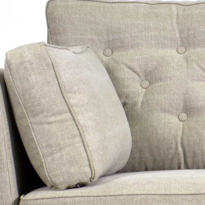 De Montenegro 3-zits bank is een klassiek romantische zitbank met een heerlijke zit. Dit komt door de comfortabele binnenvering (bonellvering). De bank is afgewerkt met decoratieve knopen en wordt geleverd met zwarte houten pootjes. Uitgevoerd in de stof Kiss zandbeige. Deze bank wordt geleverd inclusief decoratiekussens.
