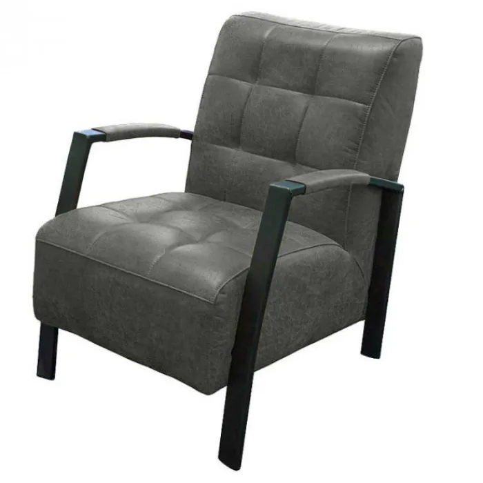 De fauteuil Elba is een elegante, maar ook een industriële fauteuil met een stevig zitcomfort. De rugleuning is voorzien van een wiebeltjes patroon. Dit geeft deze fauteuil een unieke uitstraling. De poten zijn uitgevoerd met een antracietgrijze coating en zijn voorzien van stoere lasverbindingen aan de voorzijde van de armleuning. De fauteuil past bij iedere woonstijl, van klassiek tot modern en van landelijk tot trendy. Een heerlijke stoel om lekker in weg te kruipen voor de kachel of de televisie. De fauteuil is bekleed met de antraciet-kleurige lederlook stof Missouri 09.
