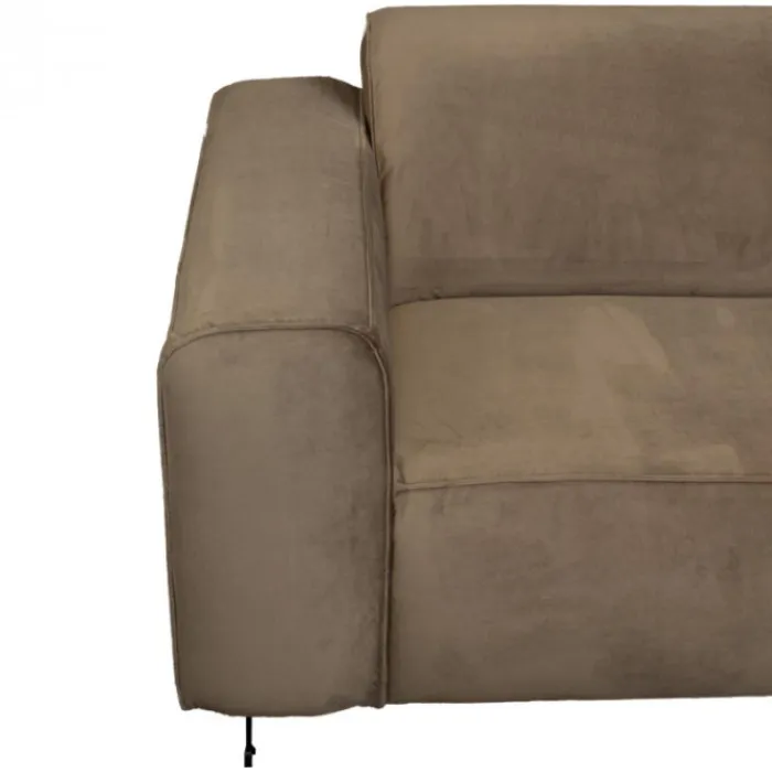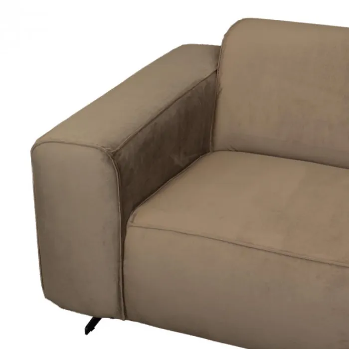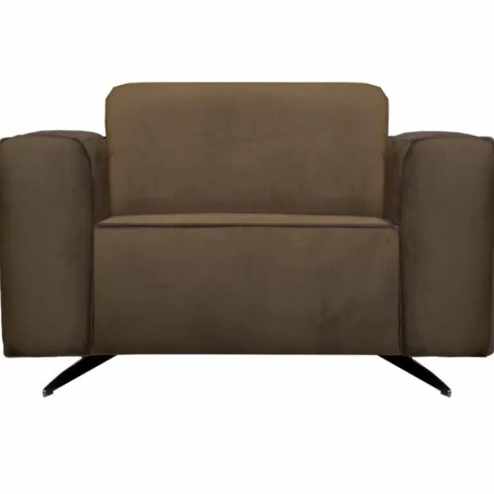 Deze stoere fauteuil heeft met zijn diepe zit met bonellvering en lage rugleuning een moderne uitstraling. De Lambada heeft vaste kussens met opstaande naden en is uitgevoerd in velours Juke taupe 12. De unieke brede poten zijn van zwart metaal. Houd je van een stevige zitting en een stoere industriële uitstraling, dan is dit jouw fauteuil!