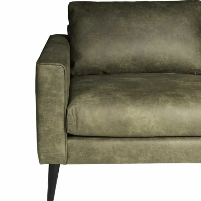 Hoekbank Aster is een hippe en eigentijdse loungebank met een Scandinavische look. Dit komt voornamelijk door de rechte vormen en het schuine hoge pootje. De bank is uitgevoerd in de stof lederlook Dalton groen 14. Hierdoor krijgt de hoekbank ook een stoere en robuuste uitstraling. De bank wordt geleverd met zwarte houten poten.